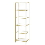 Narrow 5-Tier Glass Shelf With Gold Metal Frame