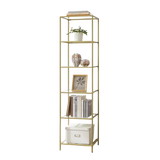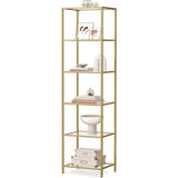 Narrow 5-Tier Glass Shelf With Gold Metal Frame