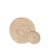 Elevate your dining space with our Natural Spiral Placemats, a set of four that brings the beauty of nature to your table. Each placemat is meticulously handcrafted from 100% natural jute, featuring a captivating round, braided design that infuses warmth and texture into any setting—perfect for intimate indoor gatherings or chic outdoor meals. The exquisite natural and white spiral pattern gracefully complements a range of décor styles, from rustic charm to sleek modern aesthetics.